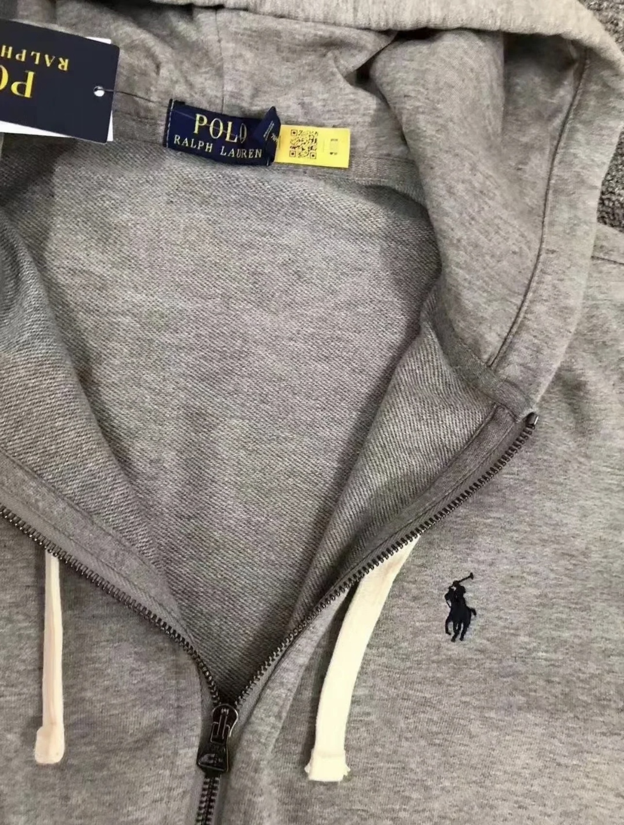 Light Grey Brand Full Zipper Hoodie – Classic Pony Logo Soft Sweatshirt Multi functional Men’s Casual Daily Hoodie