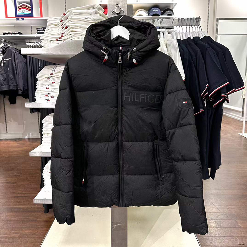 Black shiny brand hooded down jacket - waterproof and warm winter coat, red pony embroidery, suitable for men's fashion and outdoor wear - BLACK, XL
