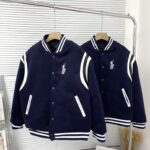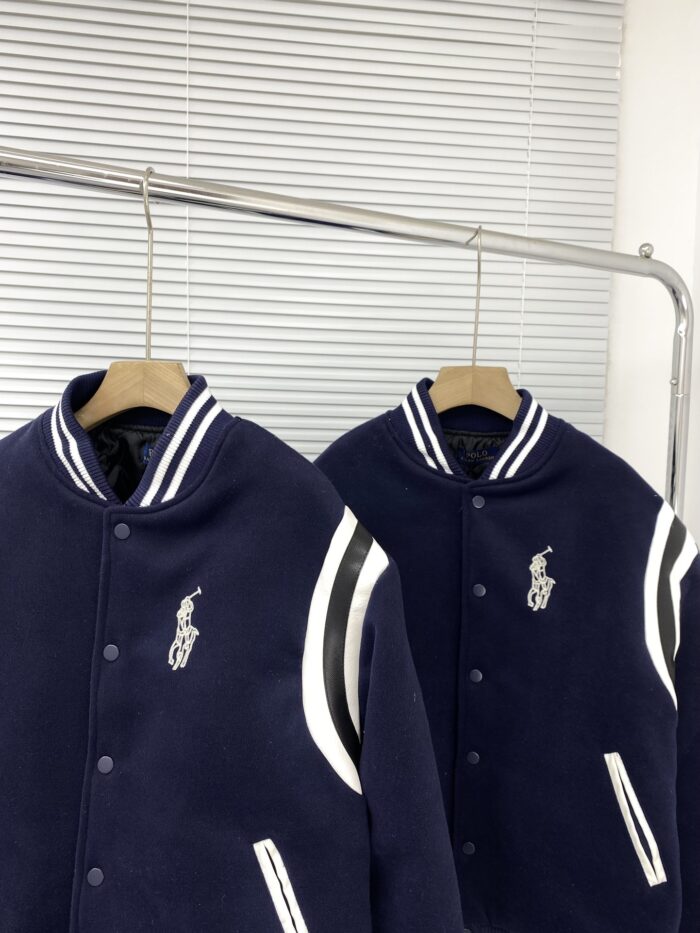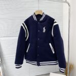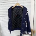 Men’s Navy Blue School Team Jacket Flip Collar Embroidered Baseball Jacket Retro Academy Style Brand Warm Winter Clothing