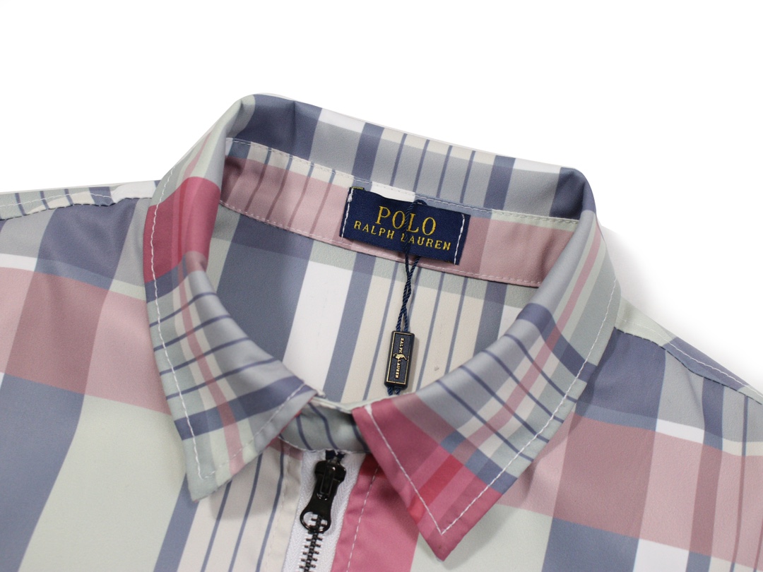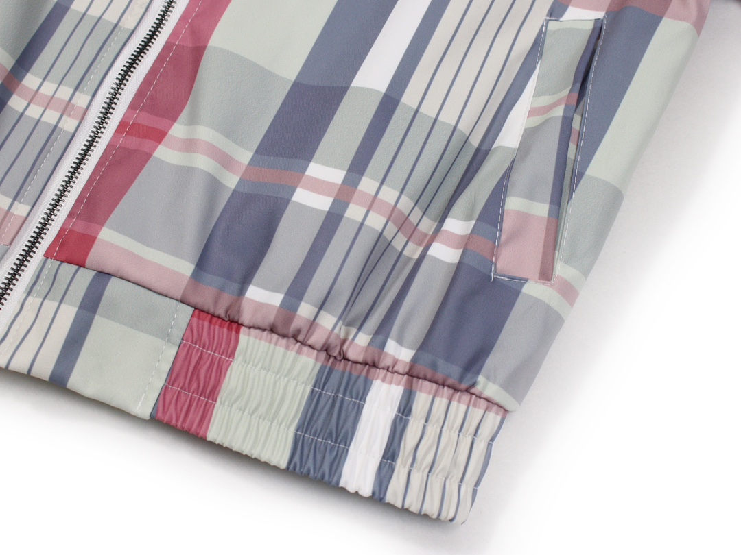Men's brand plaid jacket, pink and blue plaid lightweight windbreaker collar, zipper casual daily outerwear, spring and autumn quantity