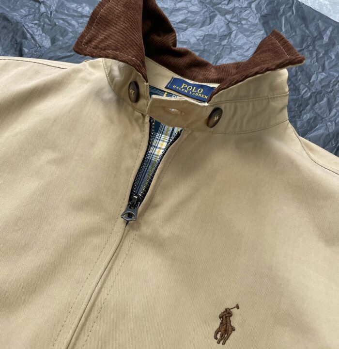 New men’s beige jacket with corduroy collar embroidered casual jacket for autumn and winter