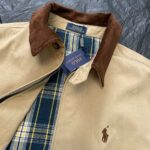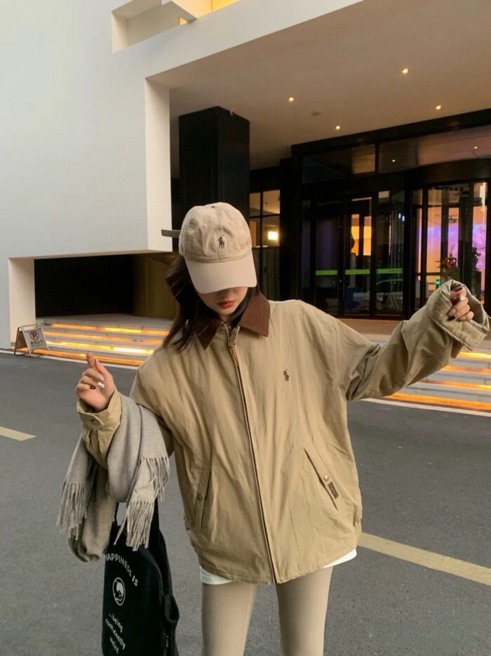 Brand retro style men's khaki jacket with lapel embroidery, corduroy collar, long sleeved casual jacket quantity