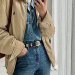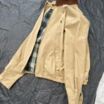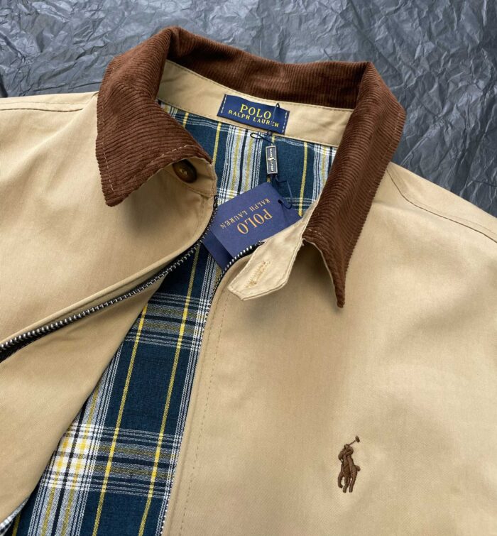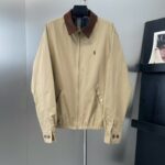 Brand retro style men’s khaki jacket with lapel embroidery, corduroy collar, long sleeved casual jacket